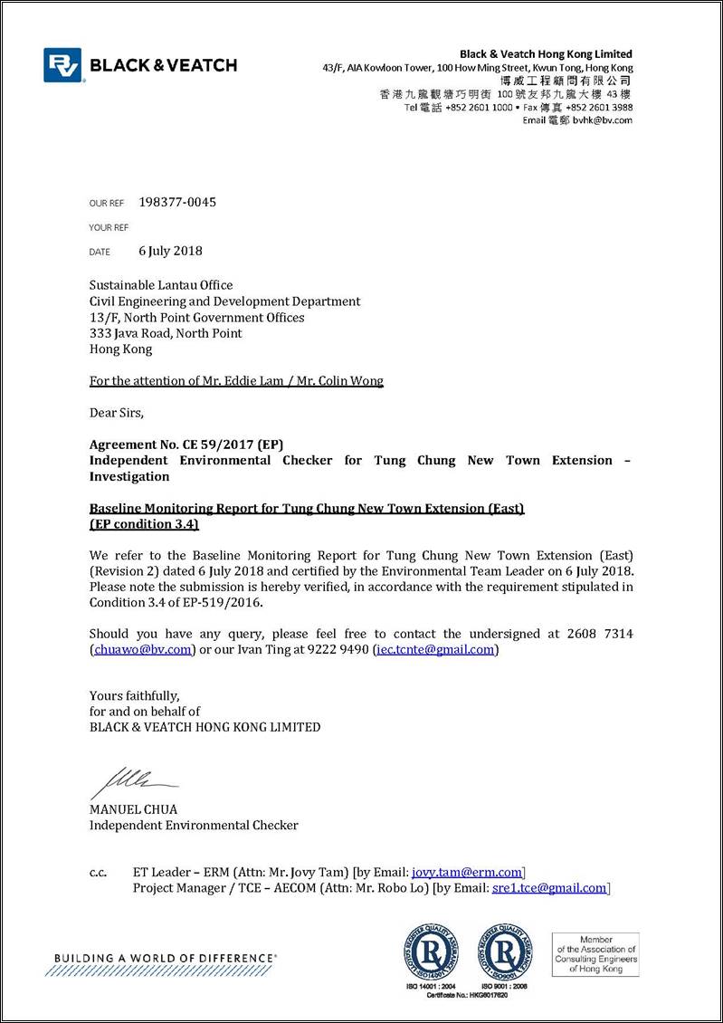 for Tung Chung New Town Extension. Deposited to EPD under Register No. AEIAR-196/2016