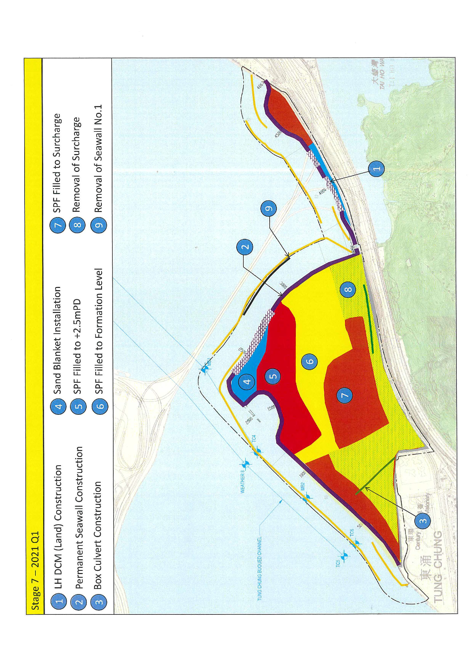 a)         Reclamation of the seabed by a non-dredged method at Tung Chung East (TCE) to form a total of about 130 hectares of land;