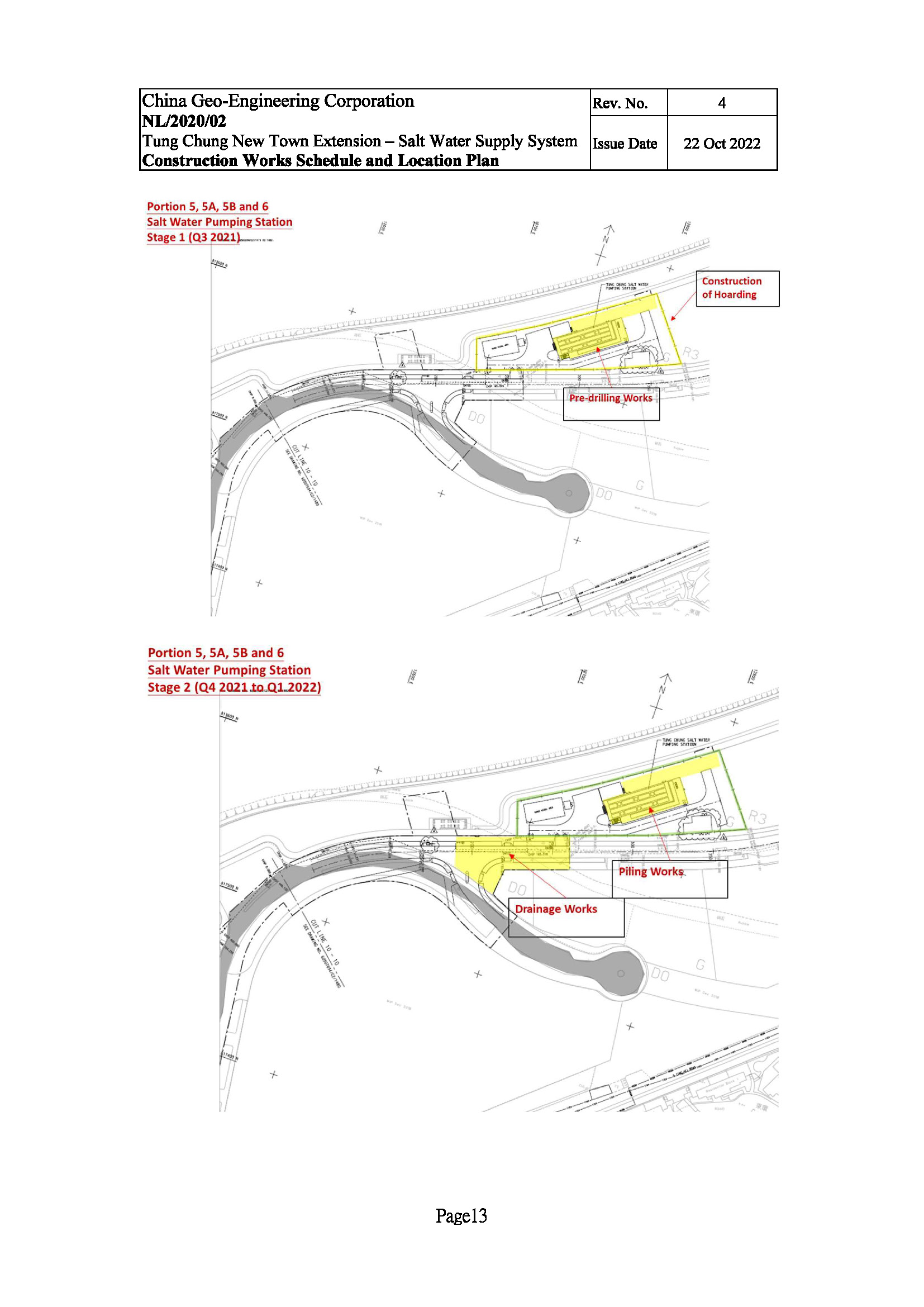 a)         Construction of Tung Chung Salt Water Pumping Station at Tung Chung East reclamation area with a pumping capacity of 54,000 m3 per day;