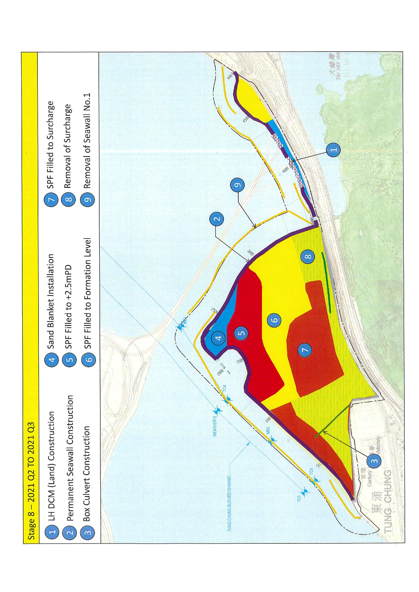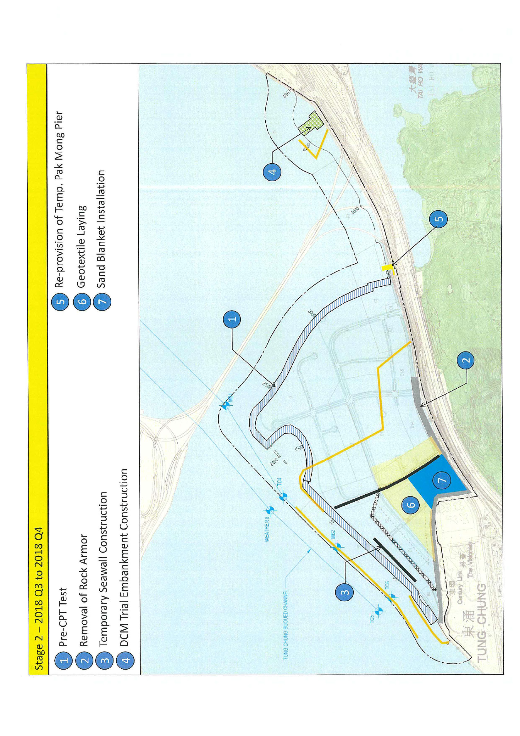 a) Reclamation of the seabed by a non-dredged method at Tung Chung East (TCE) to form a total of about 130 hectares of land;