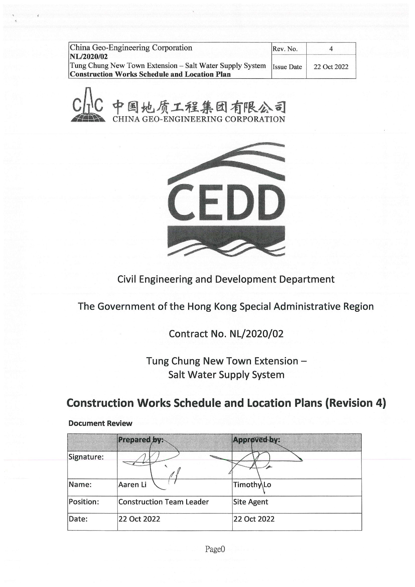 Construction Works Schedule and Location Plans for Tung Chung New Town Extension (East)
