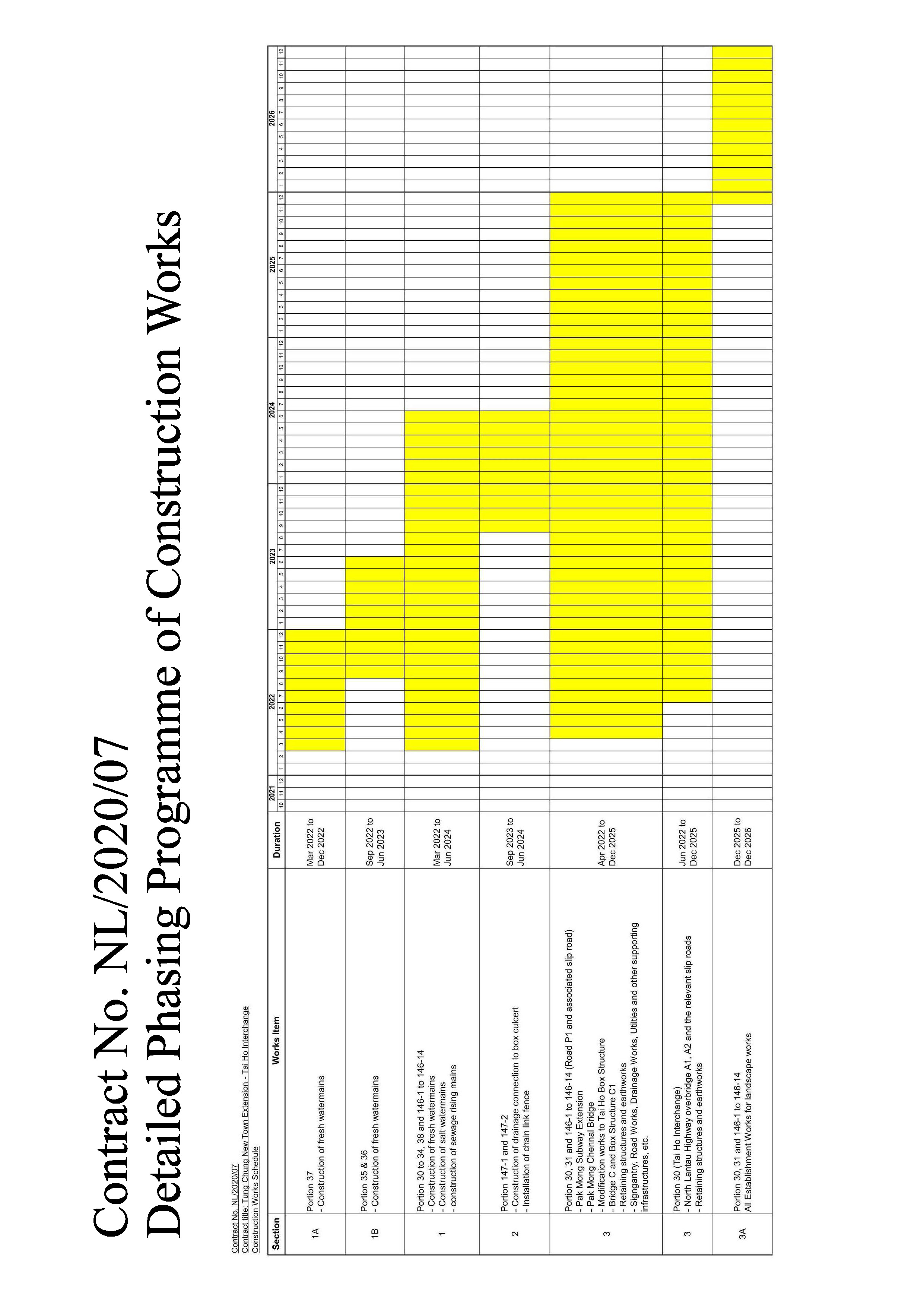 The details of Construction Works Schedule and Location Plans for Contract 1, Contract 2, Contract 3 and Contract 7 are provided in Annex 2, 3, 4, and 5 below.