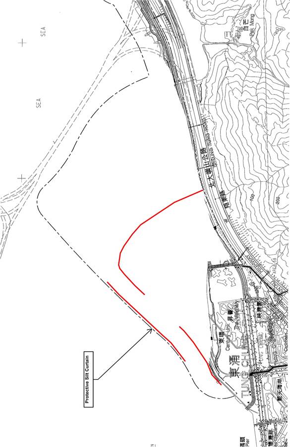 3.              Installation of Perimeter Silt Curtain during reclamation filling for DCM Trial Embankment (at the works area near Tai Ho Wan) (see Appendix C5 for the Silt Curtain Layout).