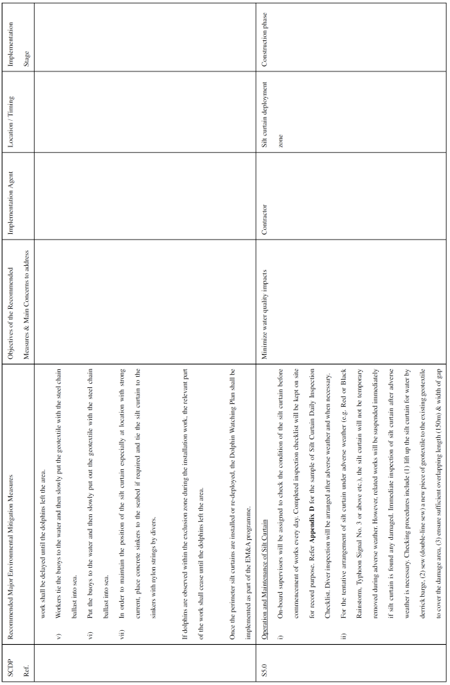 4.              Perimeter silt curtain (floating single silt curtain type) will be deployed during all reclamation works (see Appendix C6 for the Silt Curtain Layout).