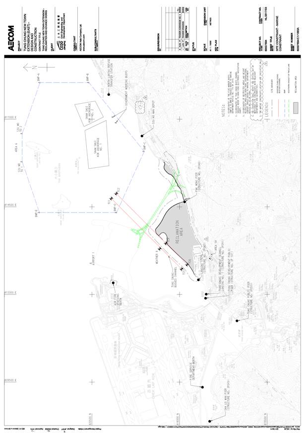 Layout Plan showing Tung Chung East Reclamation Site, Southern Viaduct of Tuen Mun-Chek Lap Kok (TMCLK) Link, Tung Chung Buoyed Channel and Brothers Marine Park is shown in Appendix B.