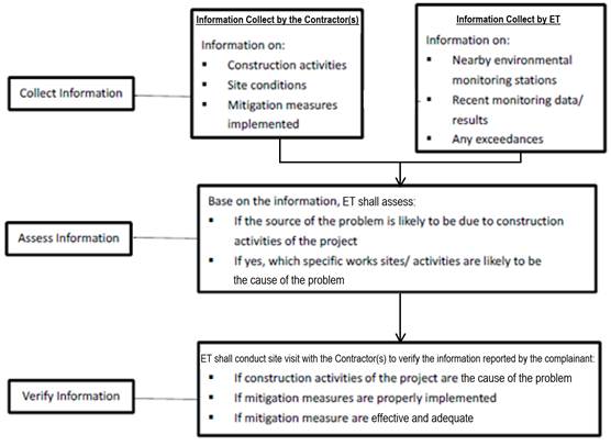 Based on the aforementioned information obtained, the ET shall assess whether the source of the problem is likely to be due to the construction activities of the TCE, and also ascertain which specific works sites and / or activities are the likely causes.