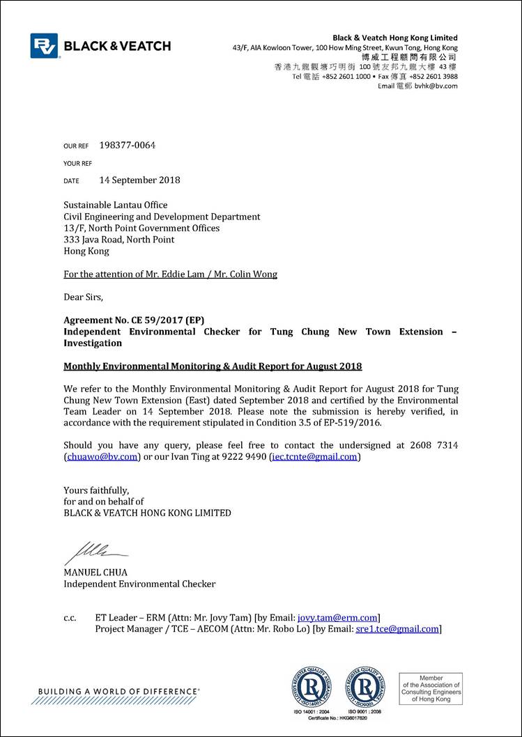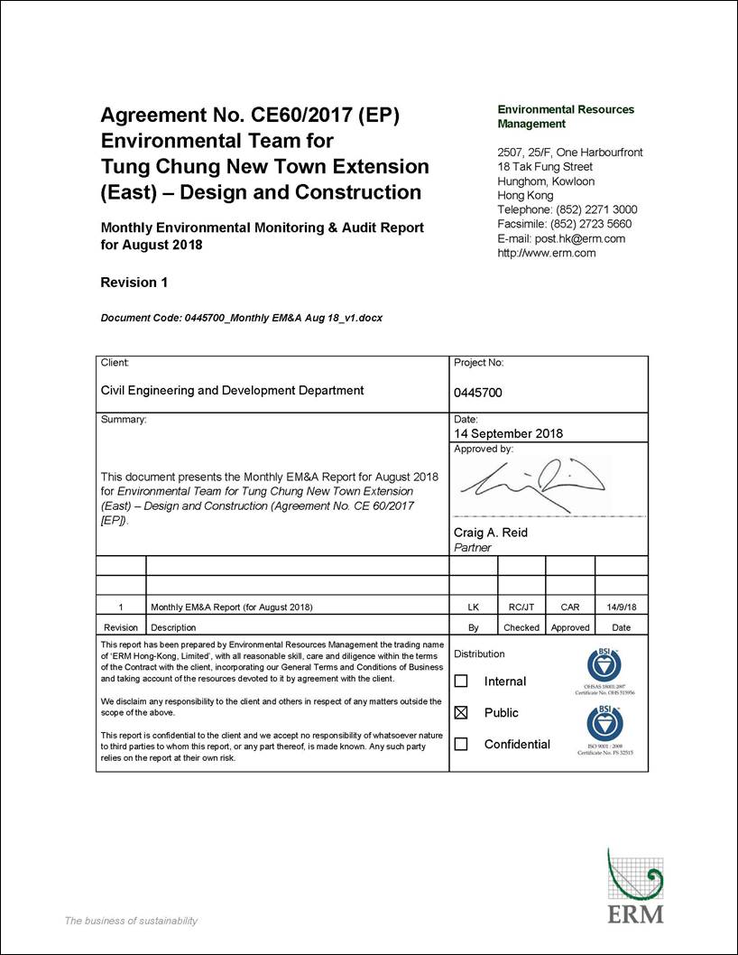 EM&A activities undertaken during the period from 1 to 31 August 2018 in