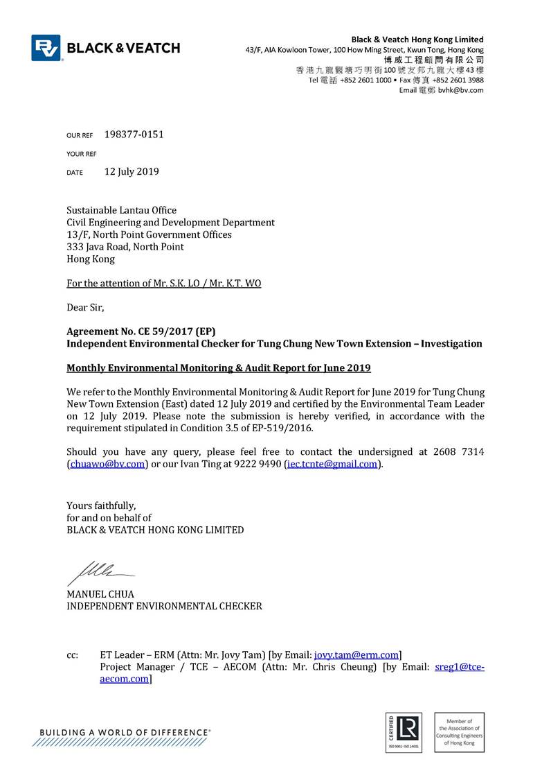 This EM&A Report presents the findings of the EM&A activities undertaken during the period from 1 to 30 June 2019 in accordance with the Updated EM&A Manual and the requirements of the Environmental Permit (EP-519/2016).