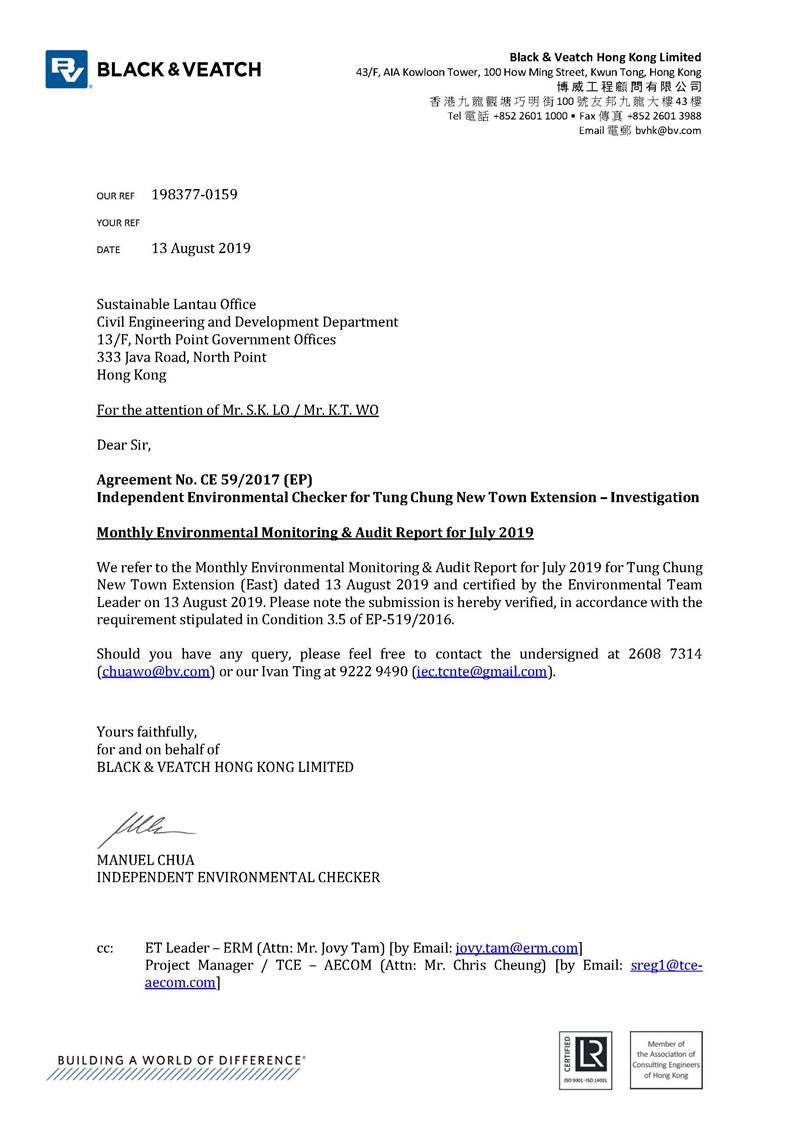 This EM&A Report presents the findings of the EM&A activities undertaken during the period from 1 to 31 July 2019 in accordance with the Updated EM&A Manual and the requirements of the Environmental Permit (EP-519/2016).