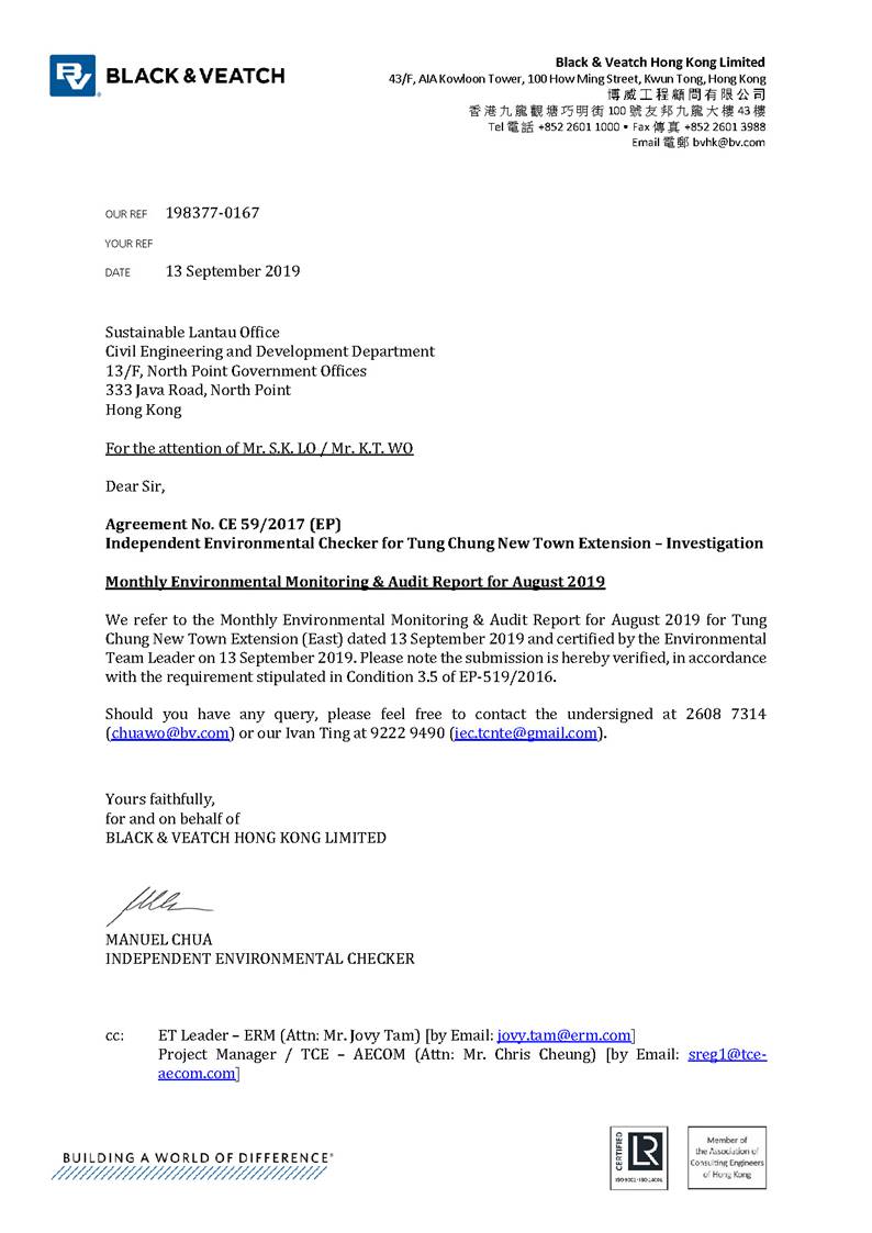 This EM&A Report presents the findings of the EM&A activities undertaken during the period from 1 to 31 August 2019 in accordance with the Updated EM&A Manual and the requirements of the Environmental Permit (EP-519/2016).