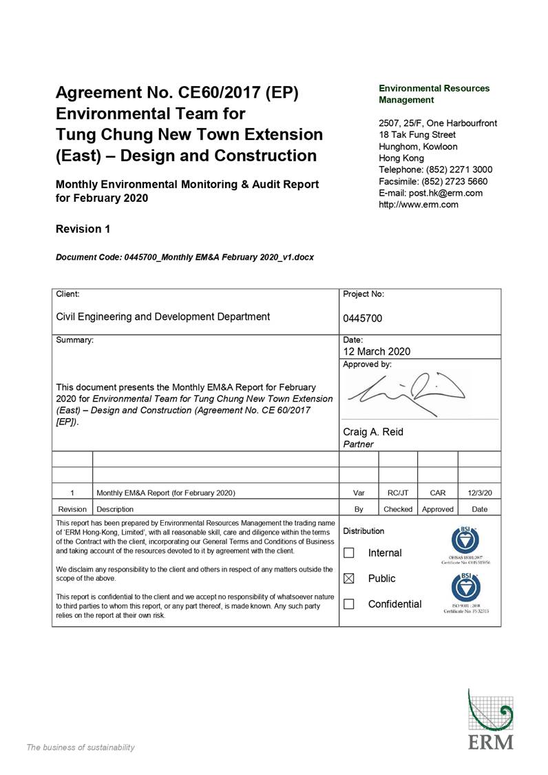 ([1])     ERM (2018a).  Updated Environmental Monitoring and Audit Manual for Tung Chung New Town Extension. Deposited to EPD under EP-519/2016