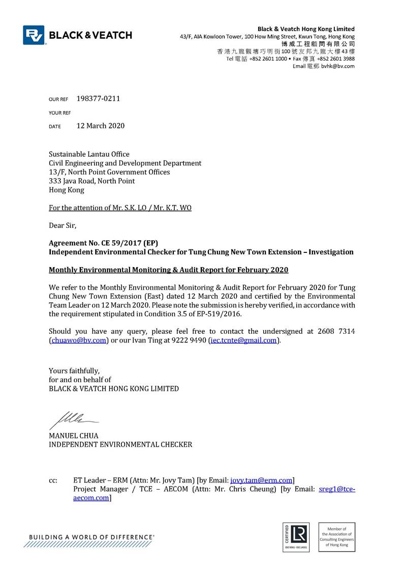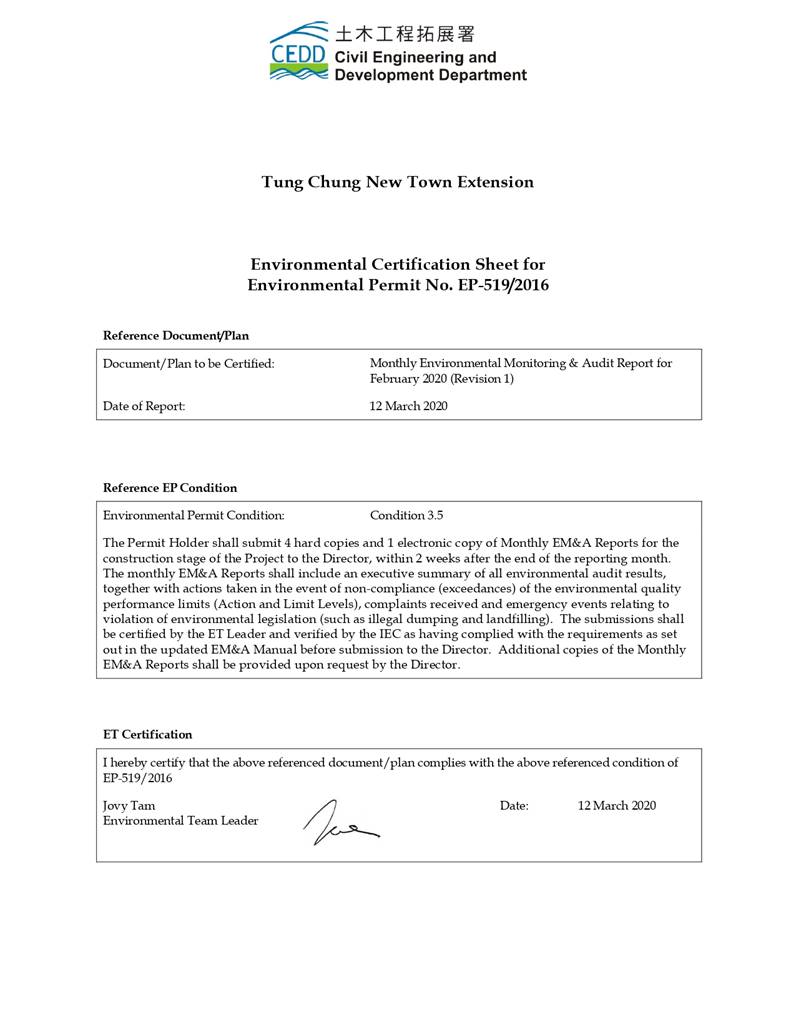 This EM&A Report presents the findings of the EM&A activities undertaken during the period from 1 to 29 February 2020 in accordance with the Updated EM&A Manual and the requirements of the Environmental Permit (EP-519/2016).