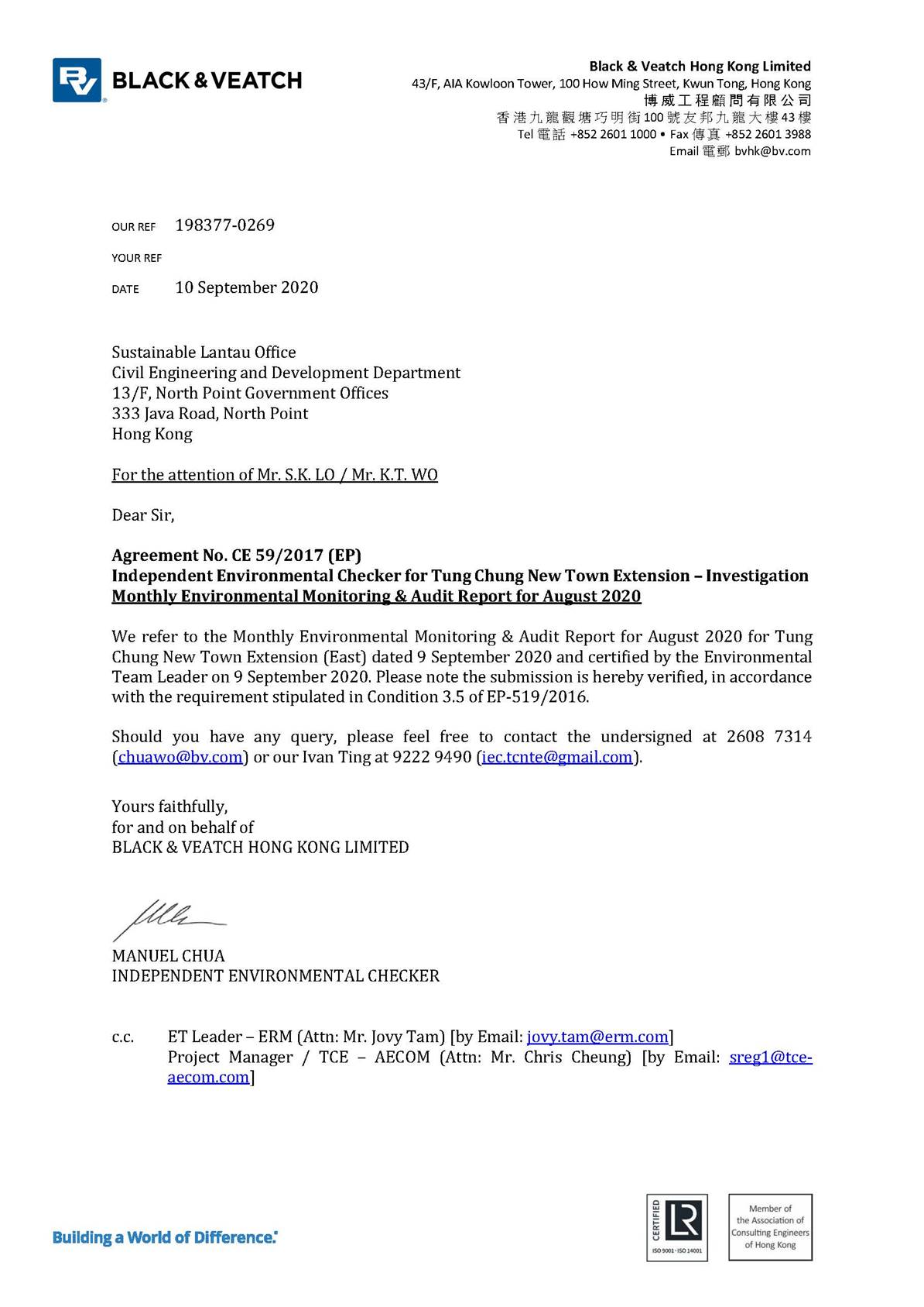 This EM&A Report presents the findings of the EM&A activities undertaken during the period from 1 to 31 August 2020 in accordance with the Updated EM&A Manual and the requirements of the Environmental Permit (EP-519/2016).