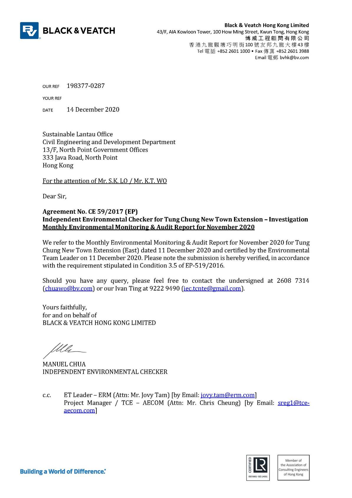 ([1]) ERM (2018a). Updated Environmental Monitoring and Audit Manual for Tung Chung New Town Extension. Deposited to EPD under EP-519/2016